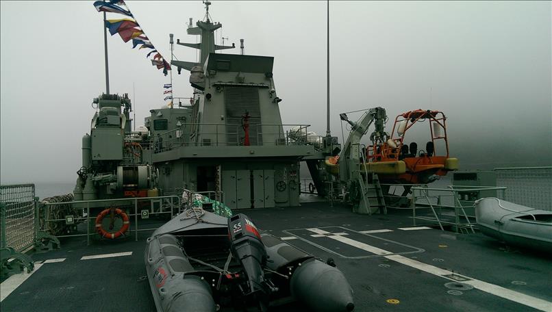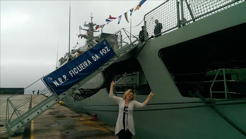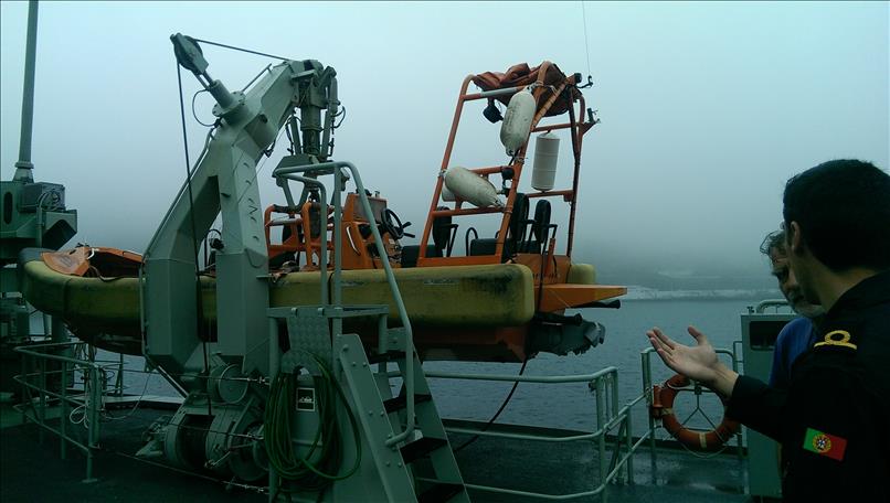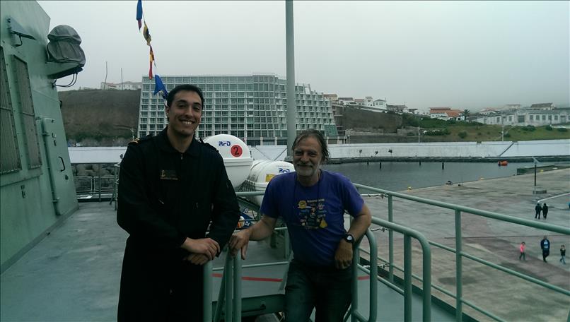 Interessant war auch die Einladung der portugiesischen Marine auf die “Figueira da Foz”, ein kleines Schiff von 2000 Tonnen, das hauptsächlich für Seenotrettung, Zollkontrollen oder auch Forschungs- bzw. Vermessungsaufgaben eingesetzt wird. Auch wenn es praktisch keine Seekarten gibt und der – immerhin vorhandene – Magnetkompass kaum ablesbar ist, so ist der junge PR-Offizier äußerst liebenswürdig und läßt uns überraschenderweise wirklich überall reinschauen.