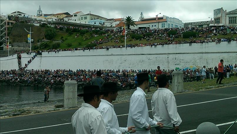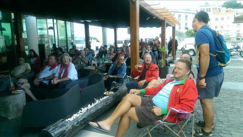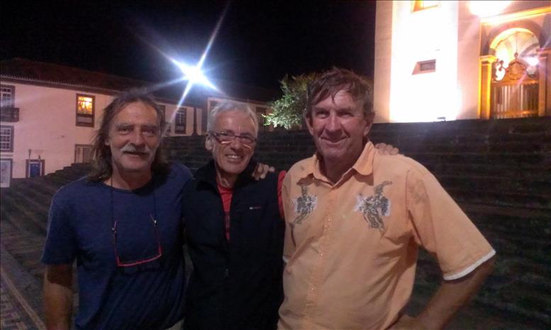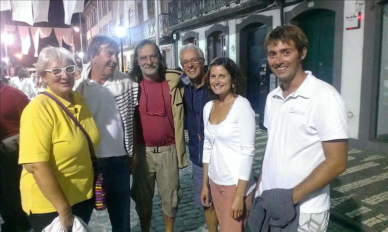 Die zweite von uns schon dringend erwartete Crew ist die der “Mauna Loa” (https://maunaloasailing.wordpress.com/). Vielleicht erinnert Ihr Euch ja noch, die beiden tapferen Kärntner Martina und Dietmar, auf der Rückreise nach Europa, das sie seit drei Jahren nicht mehr gesehen haben. Es ist schön, ihre Leinen zu übernehmen! Unterwegs hatten wir ja schon laufend Kontakt per Kurzwelle, in Sachen Wetter und auch – völlig unqualifizierter Weise meinerseits – in Sachen Fußballergebnissen. Apropos Fußball: dass Benfica Lissabon portugiesischer Meister wird, wird nur ein, zwei Nächte lang auf den Straßen gefeiert. Dass Portugal aber schließlich die EM gewinnt, bringt das Inselchen nun zum Kochen. Schwierig für uns, für unsere lieben französichen Freunde und gleichzeitig für Portugal zu brüllen, aber hier in Angra toleriert man alles Internationale mit Augenzwinkern. Was dieser Titel bedeuten wird, wenn nach den verrückten (alten!) Briten noch andere Länder wieder in die Steinzeit zurückwollen, steht in den Sternen. Vielleicht hat er dann ja noch nostalgischen Wert…