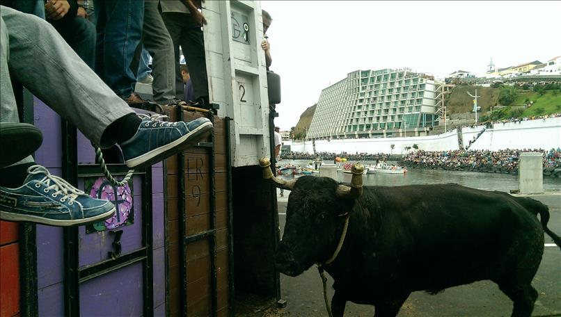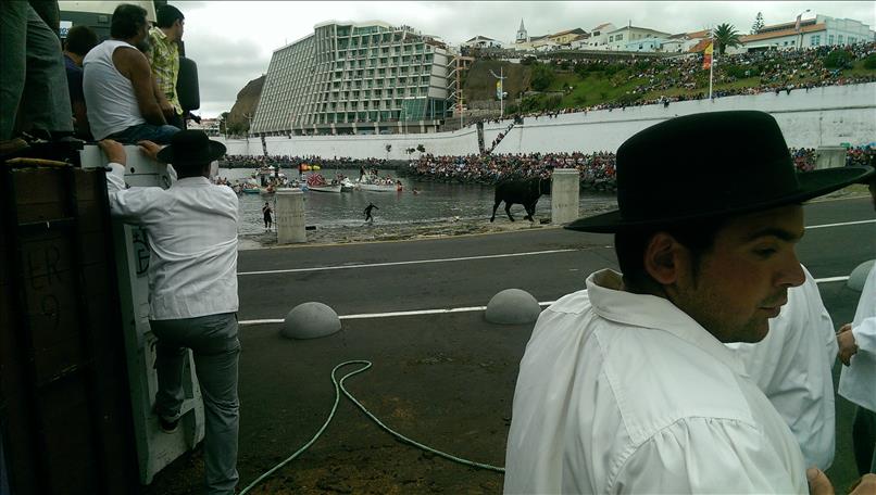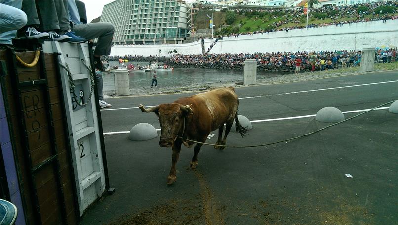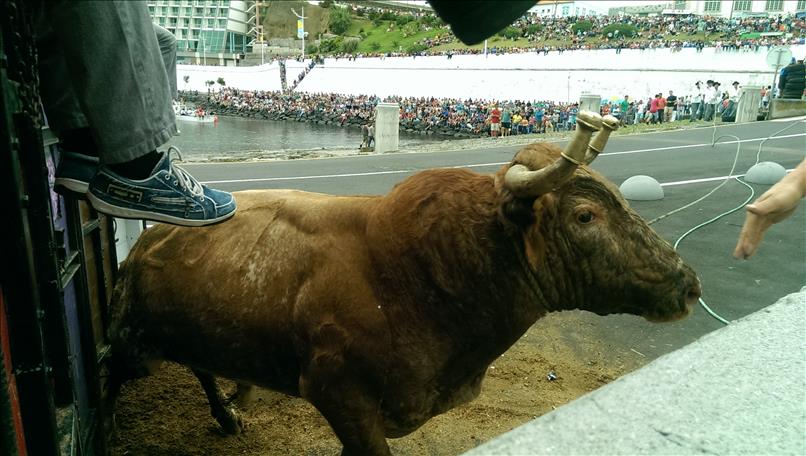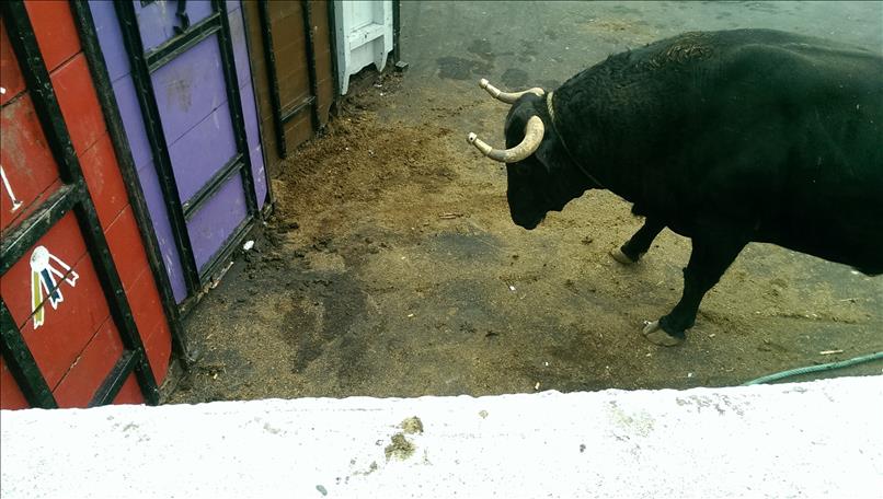 Mitte Juni bessert sich schließlich das Wetter etwas und seitens der Behörde wird mit sofortiger Wirkung “hemmungsloses Feiern” verordnet. Zuerst wieder einmal ein Stierkampf (natürlich nur an der Leine); diesmal praktischerweise gleich bei uns im Werftgelände.
