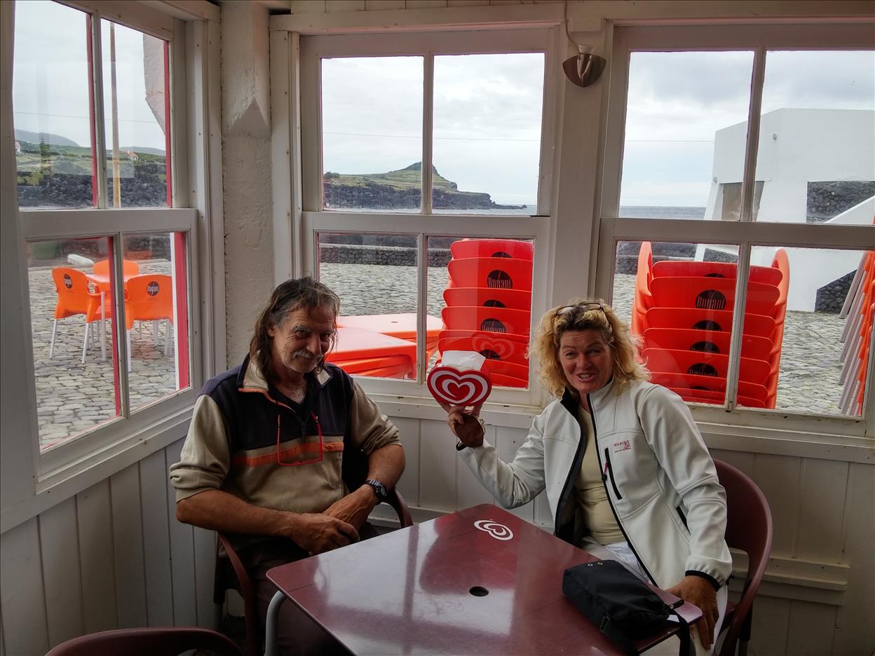 Bei Ankunft auf den Azoren, nach einer schnellen und glücklichen Überfahrt von der Karibik, erwartet er hier sehnlichst seine Vera und wir verbringen einige sehr schöne Tage gemeinsam. Alltime Fair Winds Euch beiden an dieser Stelle!