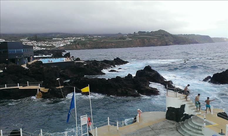 Schon im Landeanflug wird klar, dass die schlechten Wetterberichte der letzten Wochen nicht übertrieben gewesen sind. Wind, Nebel, fast täglich Regen und Temperaturen deutlich unter 20 °C schlagen sich nach einiger Zeit nicht nur bei den Terceirern, sondern bald auch bei uns aufs Gemüt. Wir holen unser Auto, das ein bisschen salzverkrustet dreinschaut, vom rechtzeitig angekommenen Dampfschiff ab und üben uns danach in Geduld. Baden? No way!