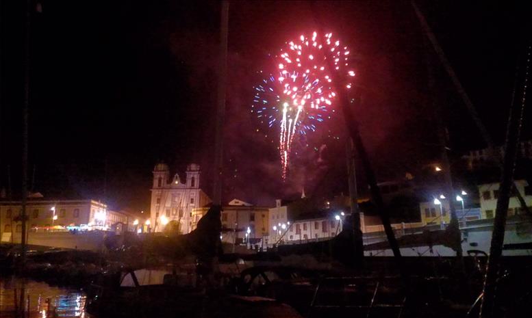 Es hat auch sein Gutes, wenn wir diesmal erst recht spät ins Wasser kommen, denn in der Werft sind wir während des San-Joaninas-Festivals etwas weiter vom musikalischen Epizentrum entfernt. Wie berichtet geht der Lärm zu dieser Zeit ja für zehn Tage und Nächte wirklich an die Schmerzgrenze. So können wir dieses an sich so sympathische Fest in kleineren Dosen zu uns nehmen.