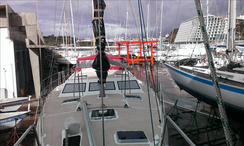 Neben dem bekannten Hurrikan “Alex”, der im Jänner mit eher glimpflichem Ausgang über die Insel gezogen ist, hat vor Allem ein Dezembersturm hier gewütet. Man berichtet von neun Meter hohen Wellen in der Bucht, weggerissener Tankstelle, zerstörten Schwimmpontons und eingeschlagenen Fenstern im Hafenbüro. Unsere Schäden sind vergleichsweise harmlos, aber Arbeit gibt’s genug.
