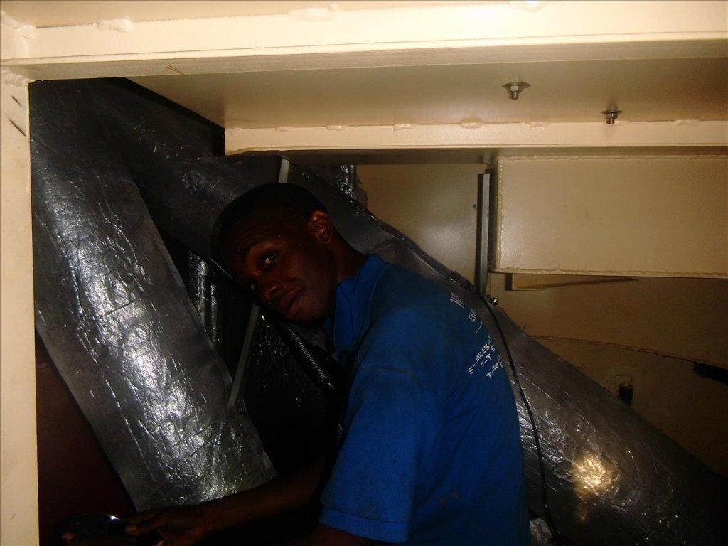 Wir wurschteln also alle an unseren Booten, werden tagelang von “Profis” bezüglich geplanter Termine vertröstet, bekommen die versprochenen Materialien nicht und sind trotzdem meist guter Dinge. Sehr verbreitet ist hier auch Dengue- und Chikungunyafieber, ziemlich ernste, von Mosquitos übertragene Infektionen mit starken, grippeähnlichen Symptomen. Viele erwischt’s. Ganz besonders leider auch Werner, der tagelang außer Gefecht ist. Außerdem fallen jetzt – wie bei den meisten Kollegen – die lange erwarteten Kakerlaken über uns herein. Sie tun niemandem was und sind eigentlich ganz freundlich, aber wenn’s im ganzen Boot schließlich nur mehr so wuselt….? Es hat lange gedauert, bis wir sie wieder losgeworden sind!