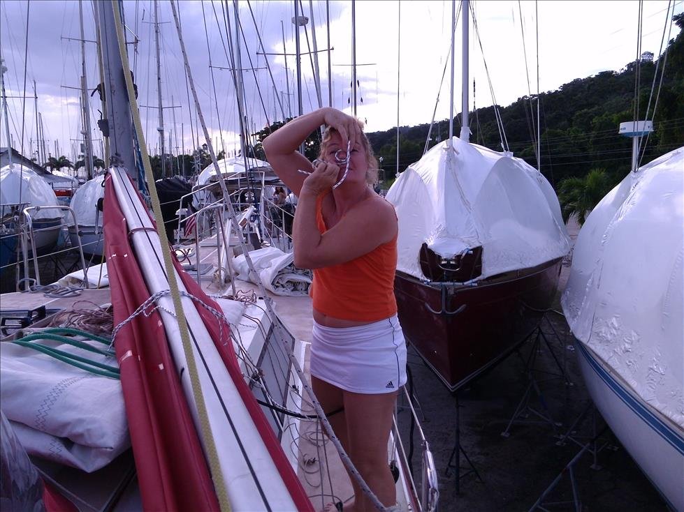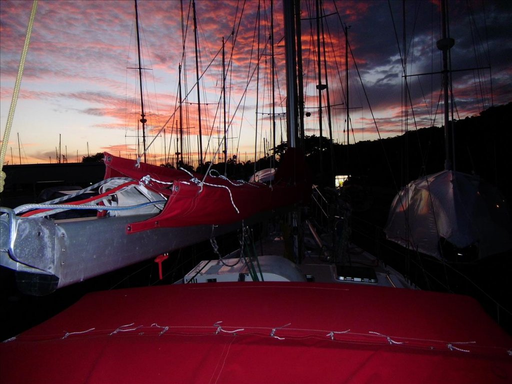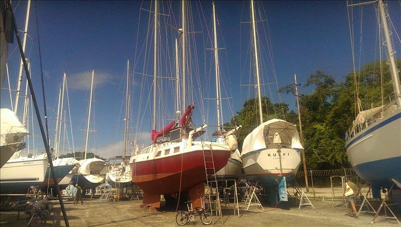Ist man das Klima hier nicht gewohnt, so bringt es einen fast um; heiß, feucht, immer wieder Regen und Mosquitos. Wie viele andere mieten wir eine Klimaanlage, die, am Dach montiert, Erleichterung bringt. Draußen kann man nur frühmorgens und am Abend arbeiten. Wir orientieren uns, organisieren Professionisten für die wenigen Reparaturen, die wir nicht selber machen können und schauen uns um, wer von unseren Freunden auch schon hier ist. Da sind Brigitta und Horst von der “Sapphire”, die mit Geduld in der Hitze werkeln, Debbie und Luc mit ihrer “Plucky Lady”, die mit ernsten gesundheitlichen Problemen Kämpfen und vor allem endlich wieder Elke und Werner mit der “Naja” – eine Riesenfreude! Alle sind mit Problemen und Problemchen ihrer geliebten schwimmenden Schneckenhäuser beschäftigt und wollen schnellstmöglich hier weg.