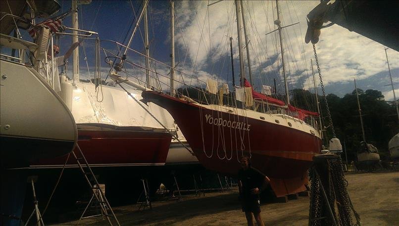 Die Ankunft in Port of Spain reißt uns sofort wieder aus diesem Film. 32° Hitze in der Nacht, Menschenschlangen und Ärger beim Zoll, keine Taxis. Wir kommen schließlich ziemlich erledigt bei unserer braven Voodoochile an und stellen erleichtert fest, dass sie in der langen Wartezeit auch ohne unsere Pflege ganz gut zurechtgekommen ist. Einige Teile aus spanischem “Qualitätssperrholz” an Deck sind verfault, und auch der feine Lederbezug des Steuerrades ist vergammelt, aber innen ist sie trocken und nicht stinkig, und offenbar hat sie auch kein Tropensturm durchgeschüttelt.